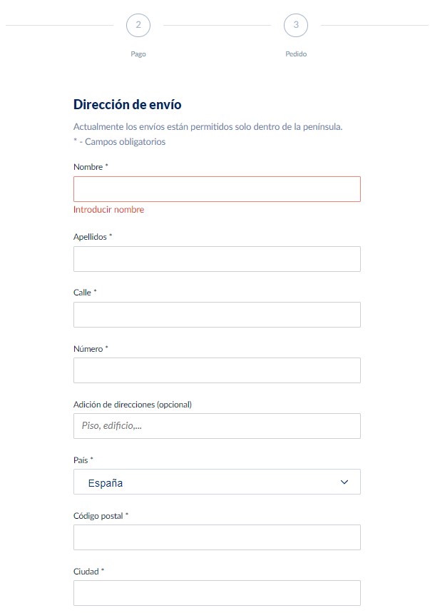 Primero, pon tus datos personales y dirección de envío para que llegue el pedido: