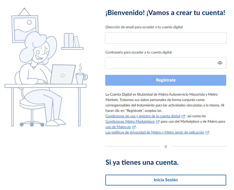 Si quieres comprar online en Makro siendo particular, lo primero es crear una cuenta.